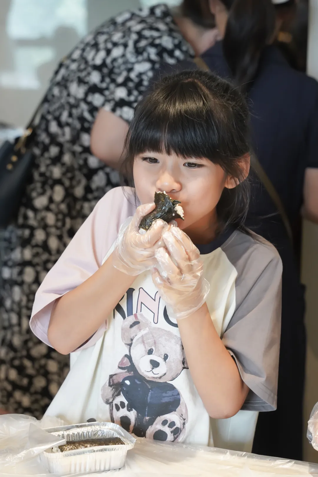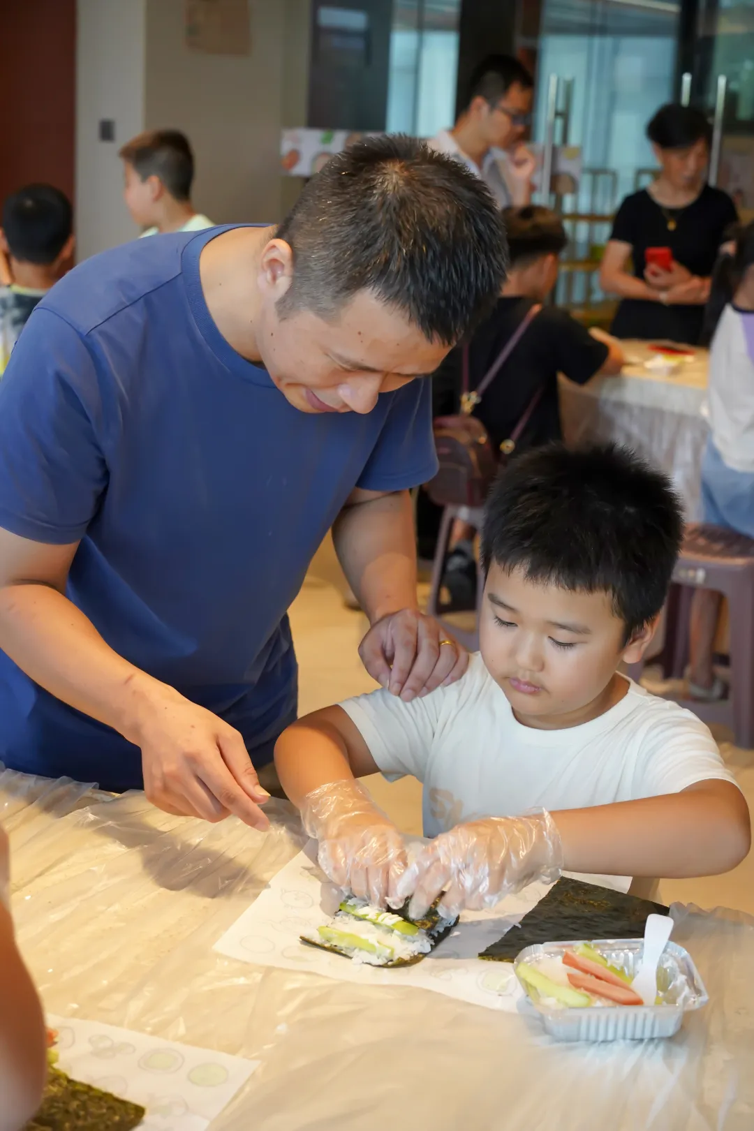 除了汲取理论知识,孩子们还有机会亲身实践。在DIY米饭汉堡环节,孩子们跟随老师指引,制作出美味的米饭汉堡。这一过程不仅锻炼了孩子们的动手能力,更为他们留下了一段难忘的亲子时光。