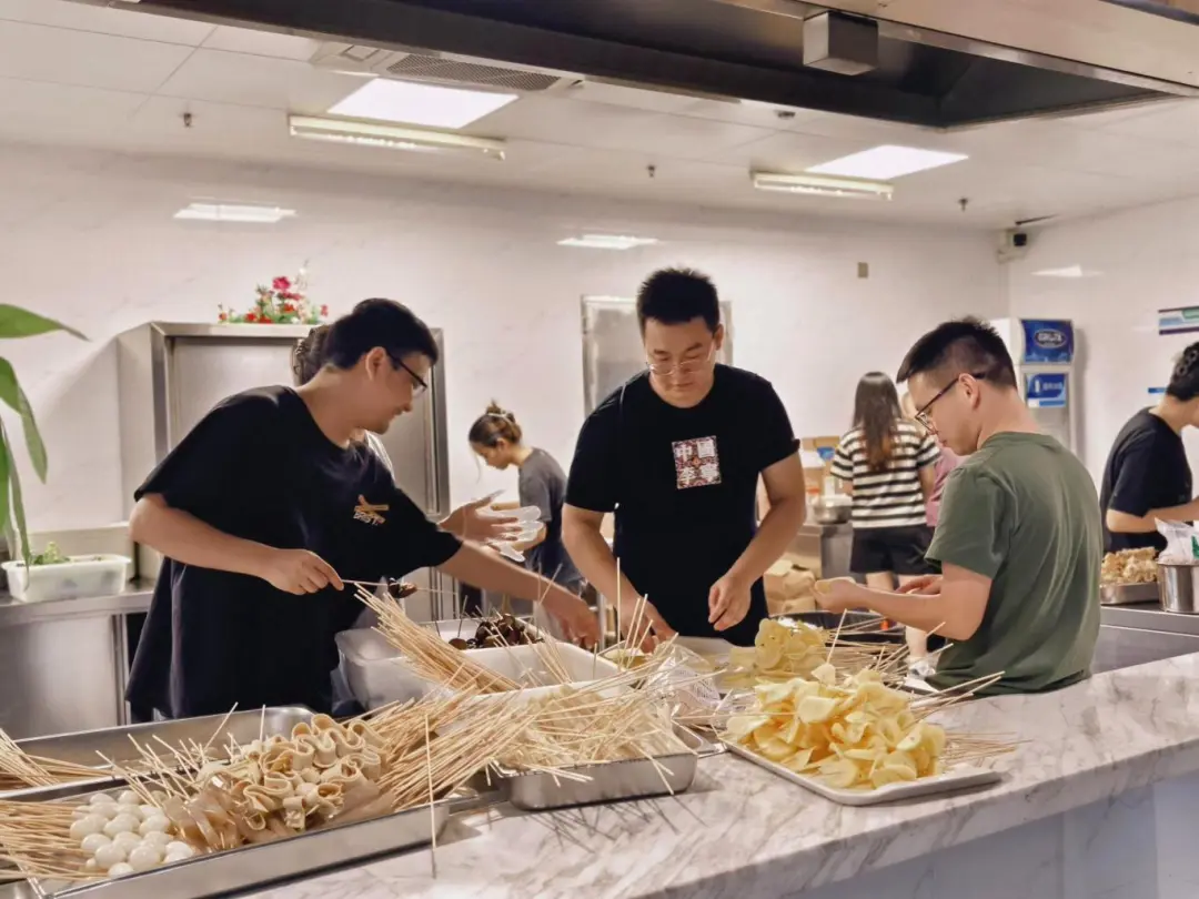 美食节前夕,当夜幕降临,洪梅园区内却灯火不熄。9月11日晚,食堂厨房里热闹非凡,各位摊主变身大厨,加班加点,只为在美食节上呈现最完美的味觉享受。切、卤、炖、煮,技艺纷呈,空气中弥漫着诱人的香气,每一道菜品都承载着摊主们的心血与创意,为即将到来的美食节添上了几分温情与期待。