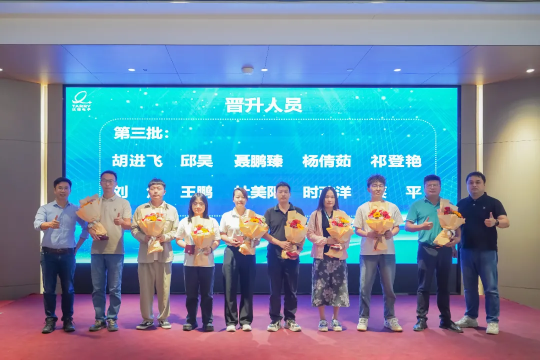随后,仪式进入了表彰颁奖环节。颁奖分六批次进行,每位晋升员工都荣获了象征荣誉的鲜花和晋升徽章,这不仅是对他们努力的认可,更是对未来的期许。