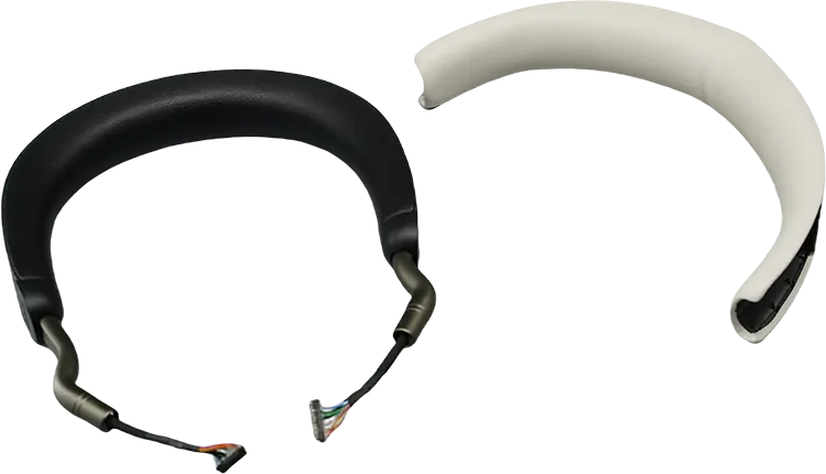 耳机头戴一般为弧形海绵结构,是头戴式耳机的重要结构性部件,起连接和固定作用,能增强耳机佩戴的舒适感和美观度,突出产品整体品质。